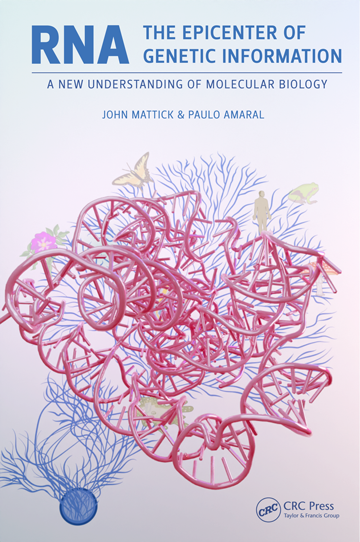 Cover image and book description from the book by John Mattick & Paulo Amaral “RNA, the Epicenter of Genetic Information” published under a CC BY-NC-ND 4.0 license.
