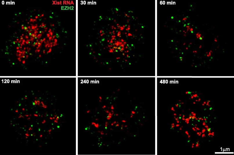 A couple of years later, I had a strong sense that the X chromosomes must communicate with each other right before inactivation. Otherwise, how would the cell know which X chromosome should be kept active and which to inactivate? For this communication, the X chromosomes could co-localize in 3D space. The second «aha moment» was when we saw them co-localizing under the microscope.