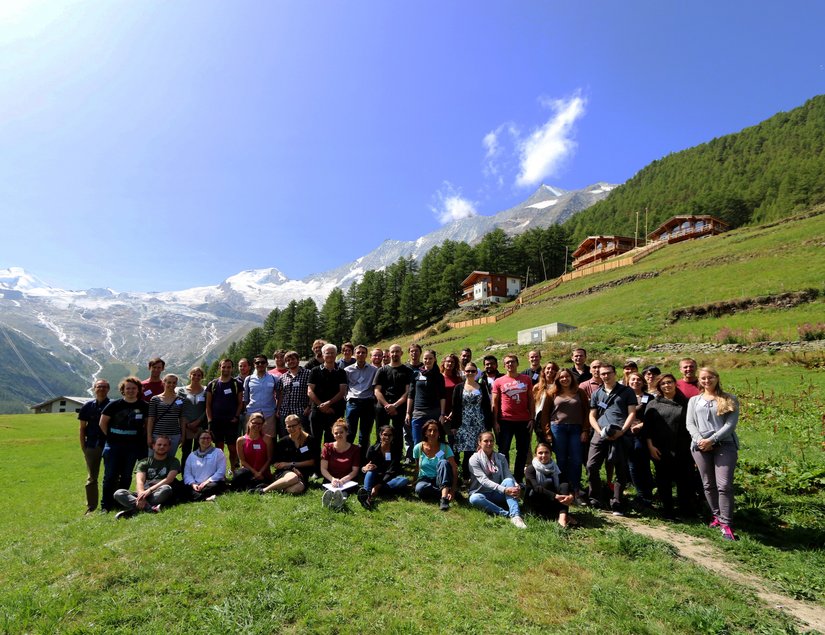 From August 28th to September 1st 2017, the NCCR RNA & Disease held its second Summer School in the beautiful scenery of Saas-Fee in the heart of the Swiss Alps. The five-day Summer School "RNA & RNP architecture: from structure to function to disease" allowed students and postdoctoral researchers to expand their knowledge in the field of RNA structure and its importance in function and disease. Moreover, a one-day workshop dedicated to RNA techniques pro-vided the unique opportunity for participants to gain deep insights into the state of the art methodologies in the field. The Summer School also provided a platform for young scientists to discuss their research and exchange ideas with leading international experts and pioneers in the field and among each other. A stunning lineup of invited speakers gave the students and postdocs an excellent overview on the multifaceted topic of RNA structural biology and beyond. Topics of the lectures included structure-based discovery of RNA functions, an integrative view of interaction networks between mRNA, tRNA and rRNA, the power of combining structural approaches to solve structures of protein-RNA-complexes, the impact of high-throughput data in structure and interaction predictions, non-coding RNA pathways guided by mi-croRNAs and circular RNAs, circadian RNA biology, structural and functional insights into ribosomes, miscoding-induced stalling of substrate translocation on the ribosome, ribosome functions revealed by nucleotide analog interference, translational control in cancer, and mechanistics and biological functions of Nonsense-Mediated mRNA Decay. During the RNA techniques workshop the power, the area of applications as well as the limitations were presented in an interactive discussion for a variety of methods: Chemical tools in RNA research, Selective 2' Participants of the 2nd NCCR RNA & Disease Summer SchoolParticipants hiking on the Ibex Trail during the free afternoon on Wednesday. Larissa Grolimund und Norbert PolacekTHE NCCR RNA & DISEASE MESSENGER, No. 7, December 2017 82nd NCCR RNA & Disease Summer School Hydroxyl Acylation analyzed by Primer Extension (SHAPE), RNA live cell imaging, ribosome profiling, CRISPR-Cas genome editing, struc-ture determination of protein-RNA complexes using Mass-spectrometry, and Cryo Electron Microscopy. Furthermore, all participants were given the opportunity to train their presentation skills in short presentations or chalk talks. During the two-hour discussion rounds with the invited speakers, an ideal setting was provided for the participants to informally discuss science with distinguished scientists in the field. The organizers would like to thank all invited guests and participants for shaping a successful, stimulating and memorable Summer School!