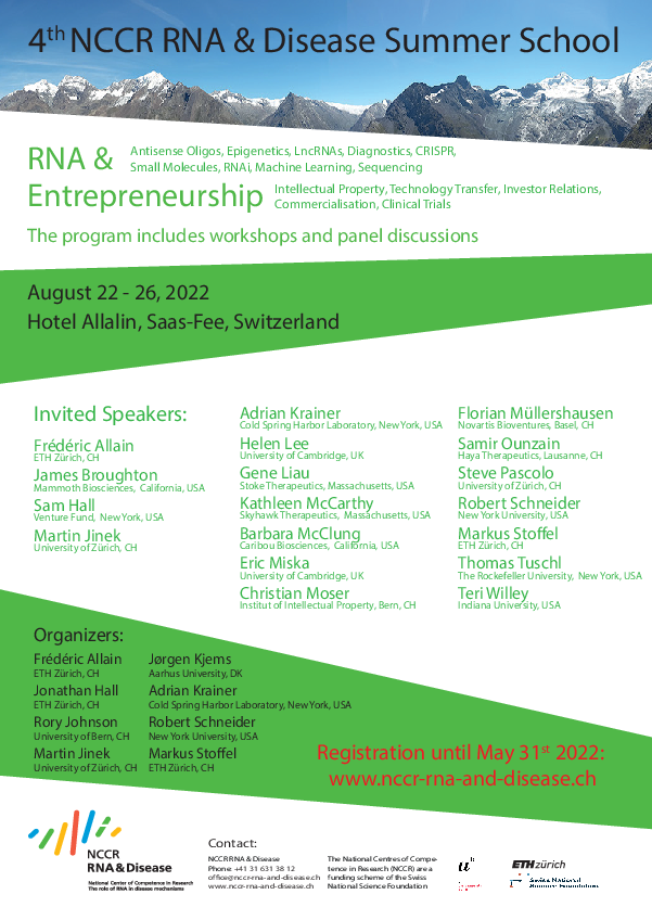 The 4th NCCR RNA & Disease summer school "RNA and Entrepreneurship" took place in Saas-Fee, Switzerland, from August 22-26, 2022.